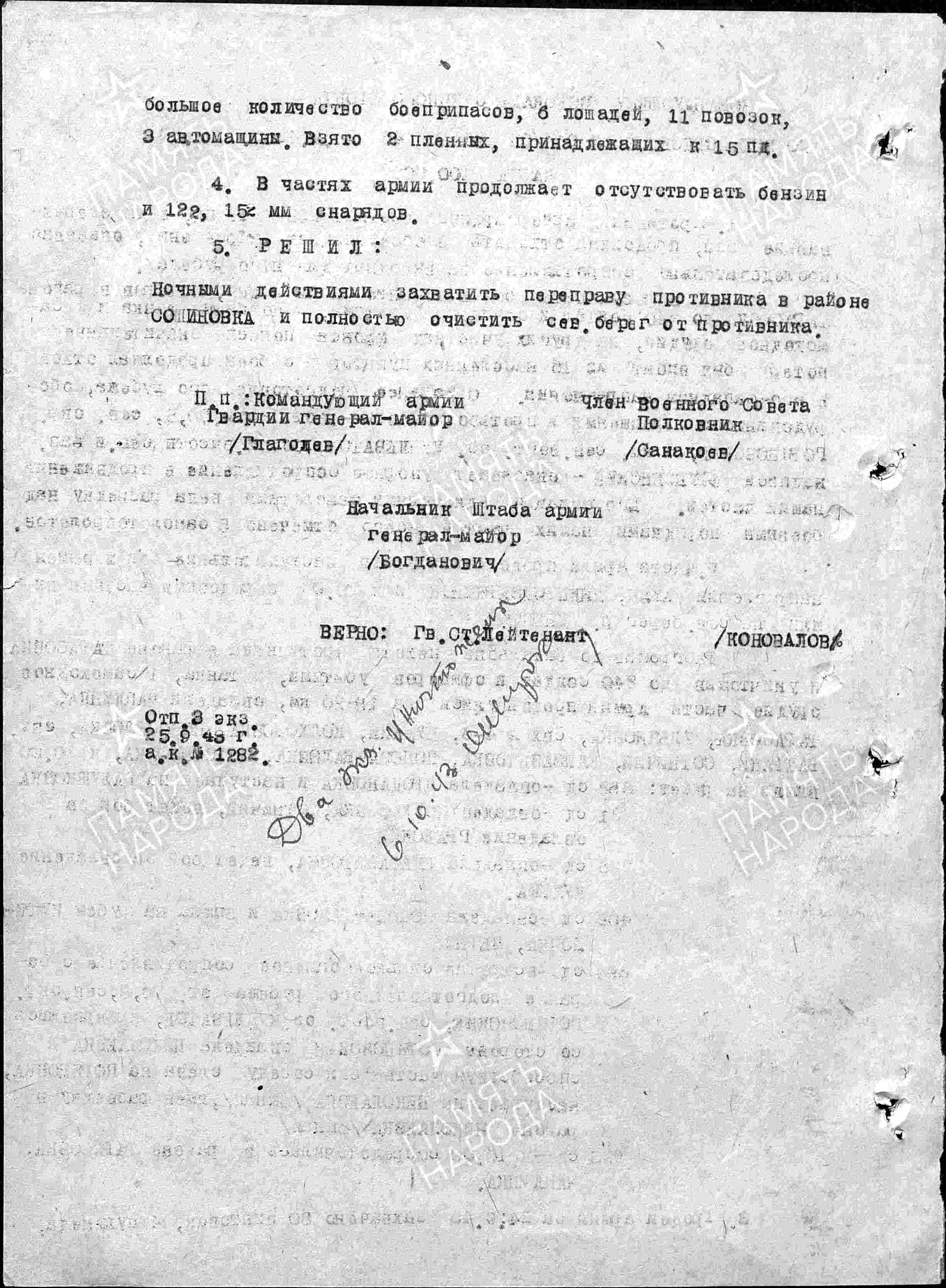 6. Отчет по инженерному обеспечению наступления 46 Армии с форсированием Днепра с 25.09 по 25.10 43 г.