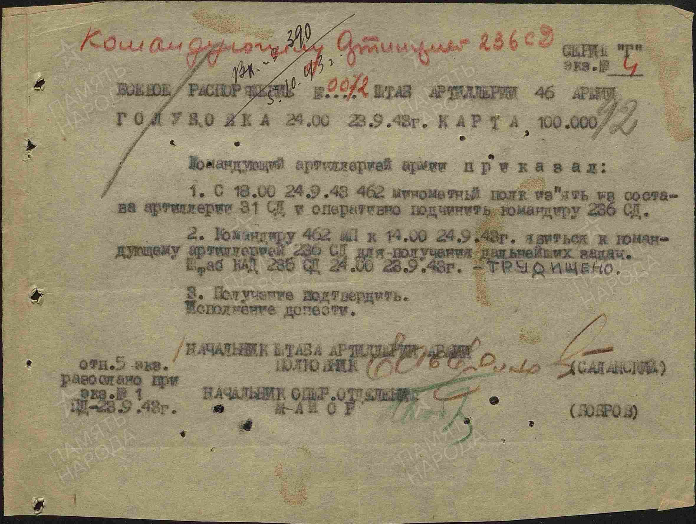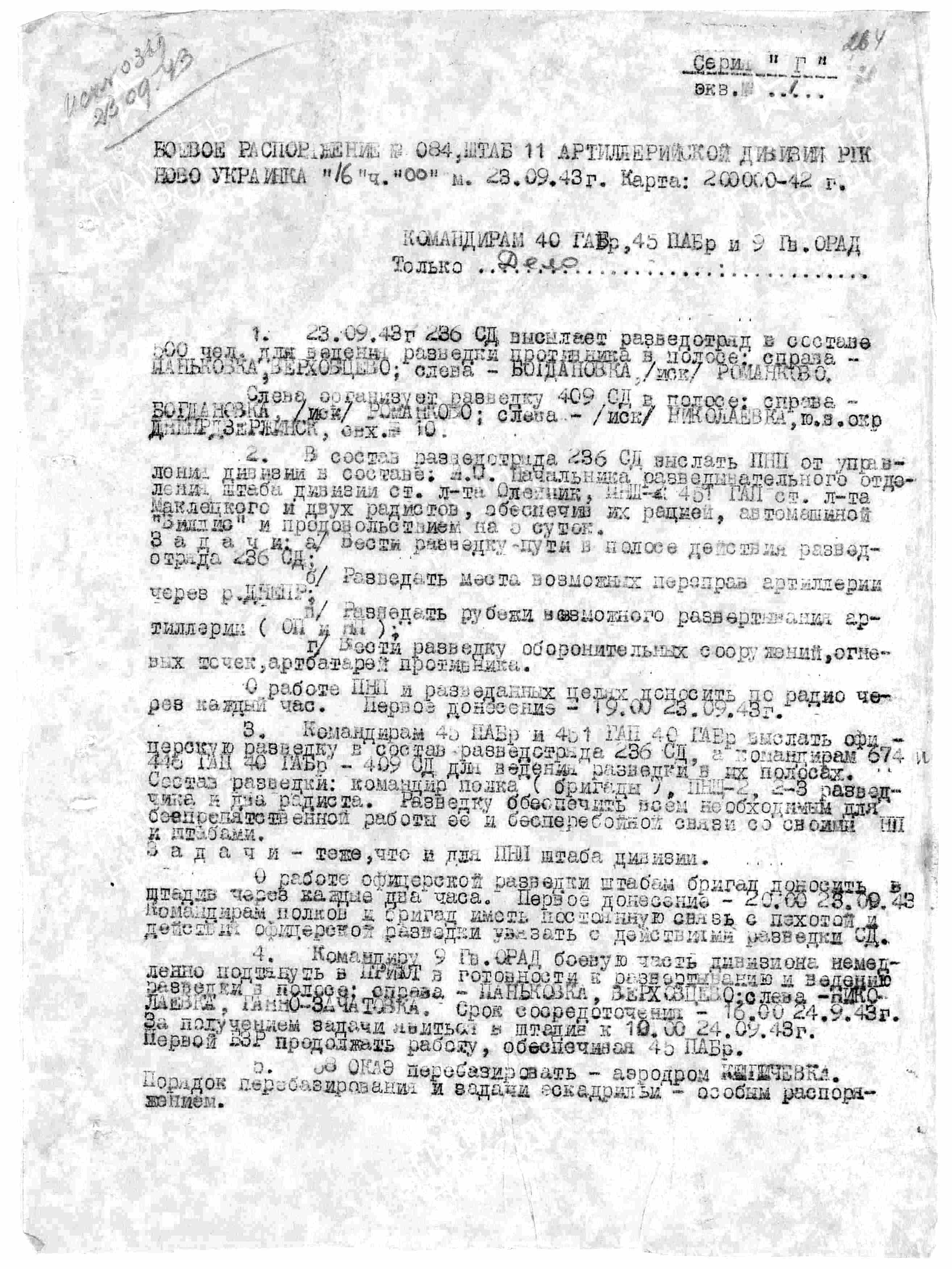 d15. Боевое распоряжение 46 А № 084 от 23.09.43 г