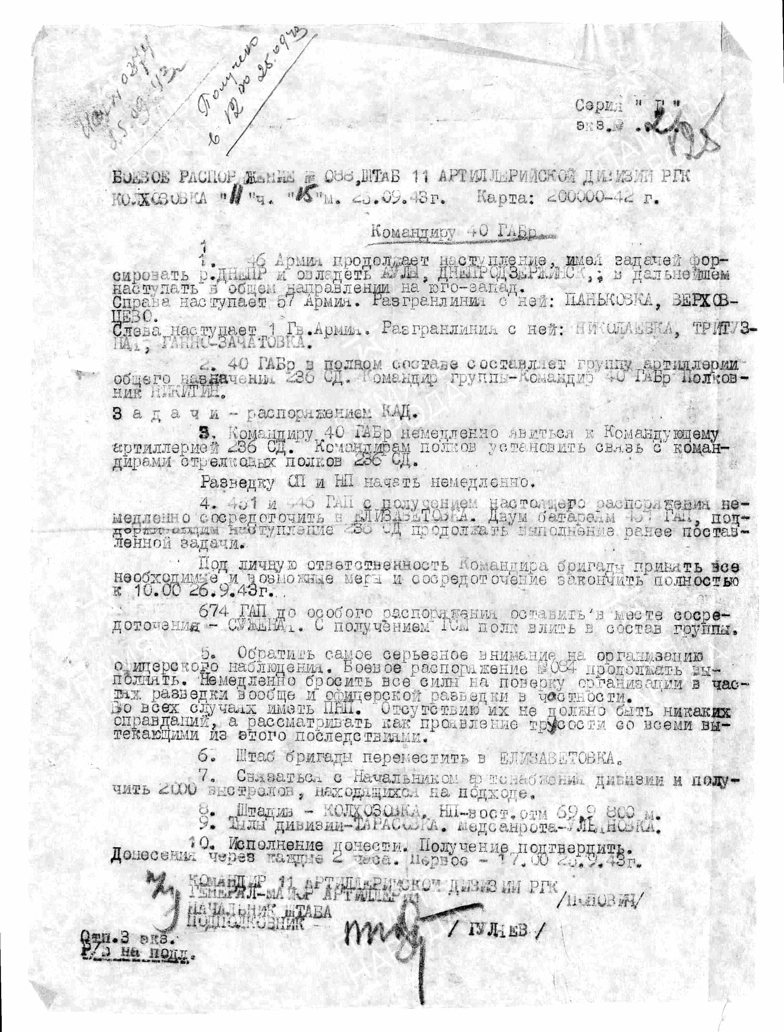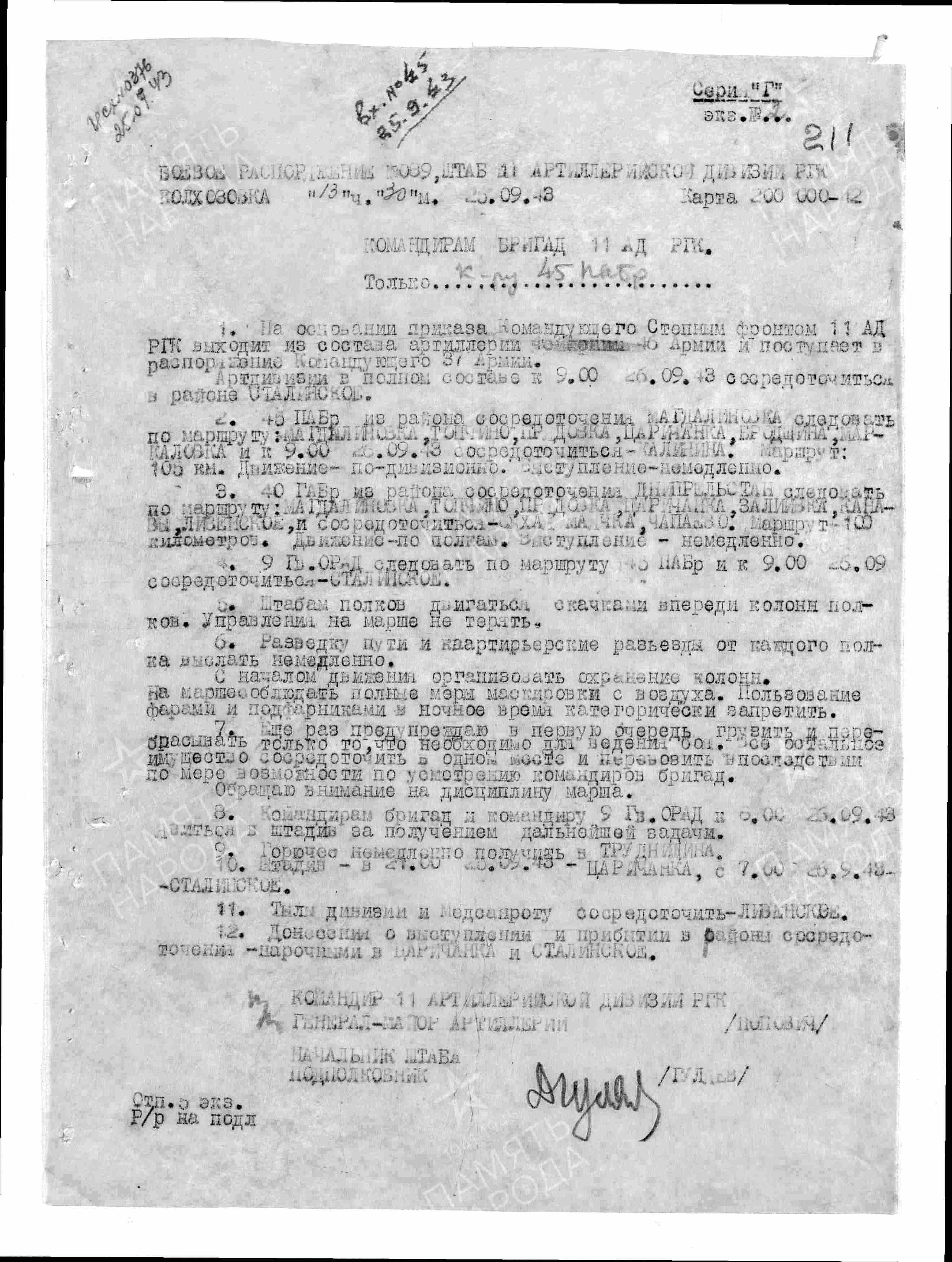 d16. Боевое распоряжение № 088 штаба 11 АД от 25.09 от11-15 ч.