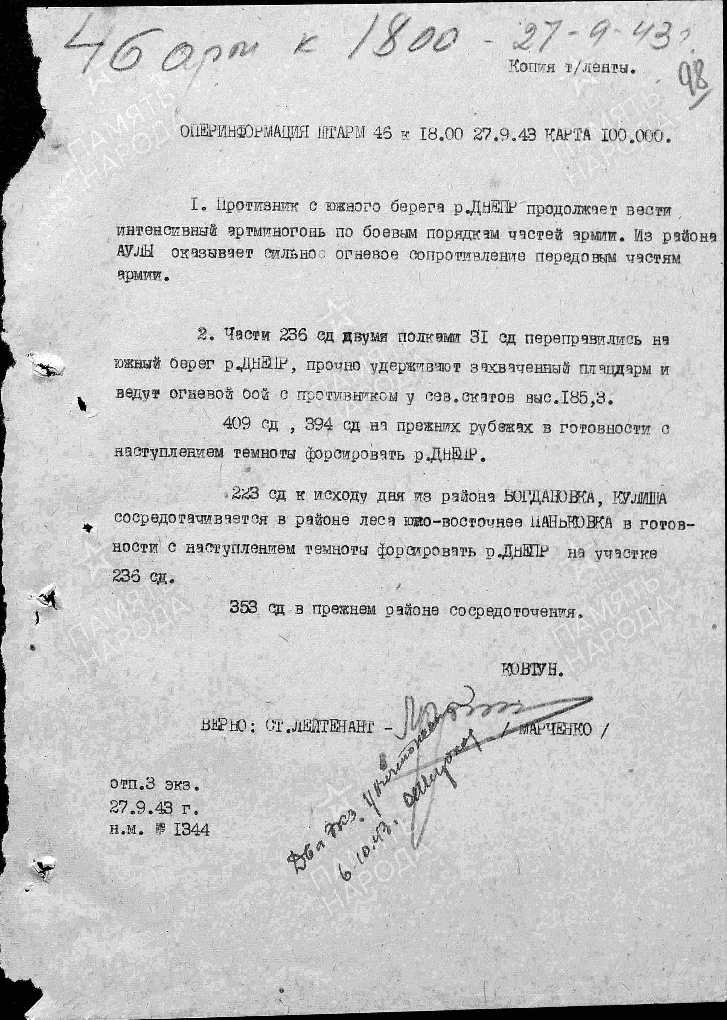 d28. Оперативная информация штаба 46 А на 22–00 27.09
