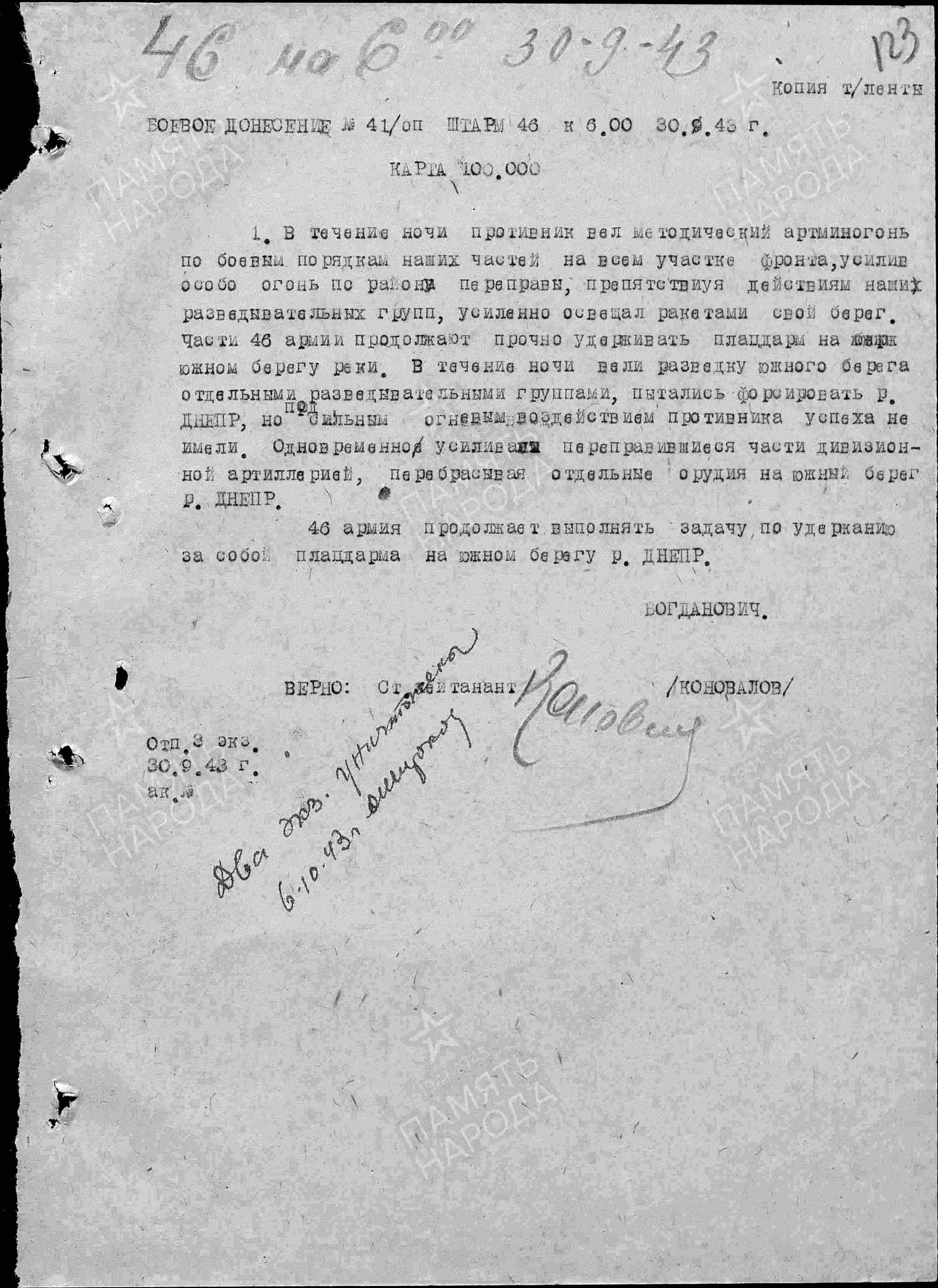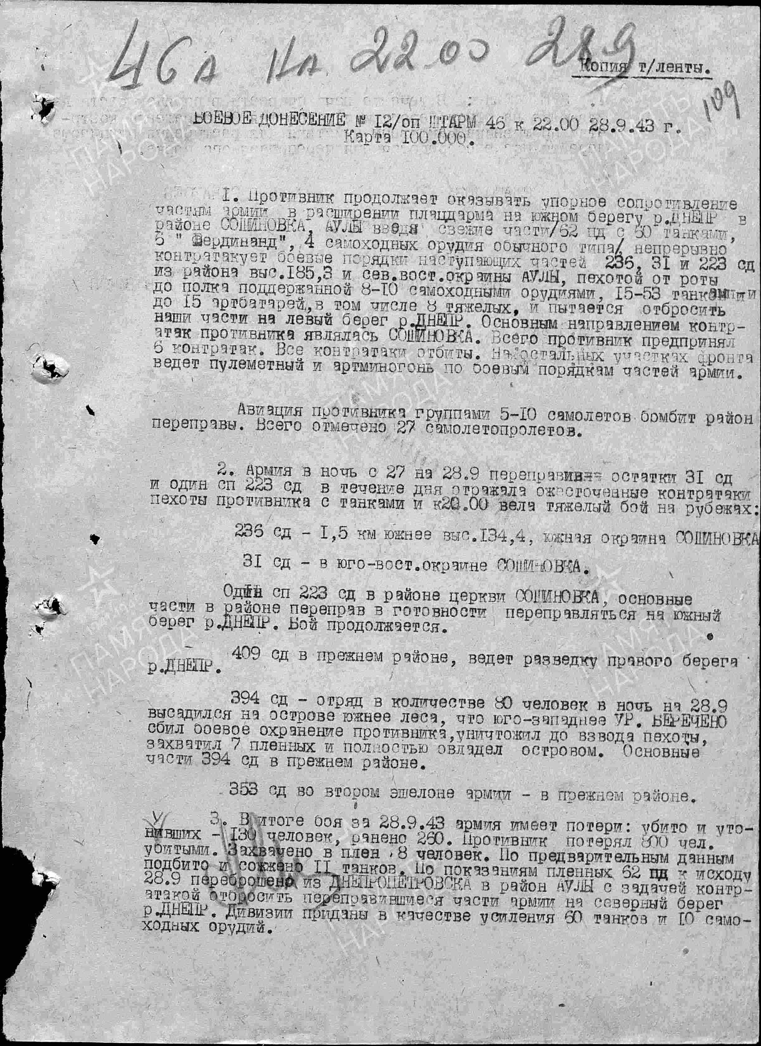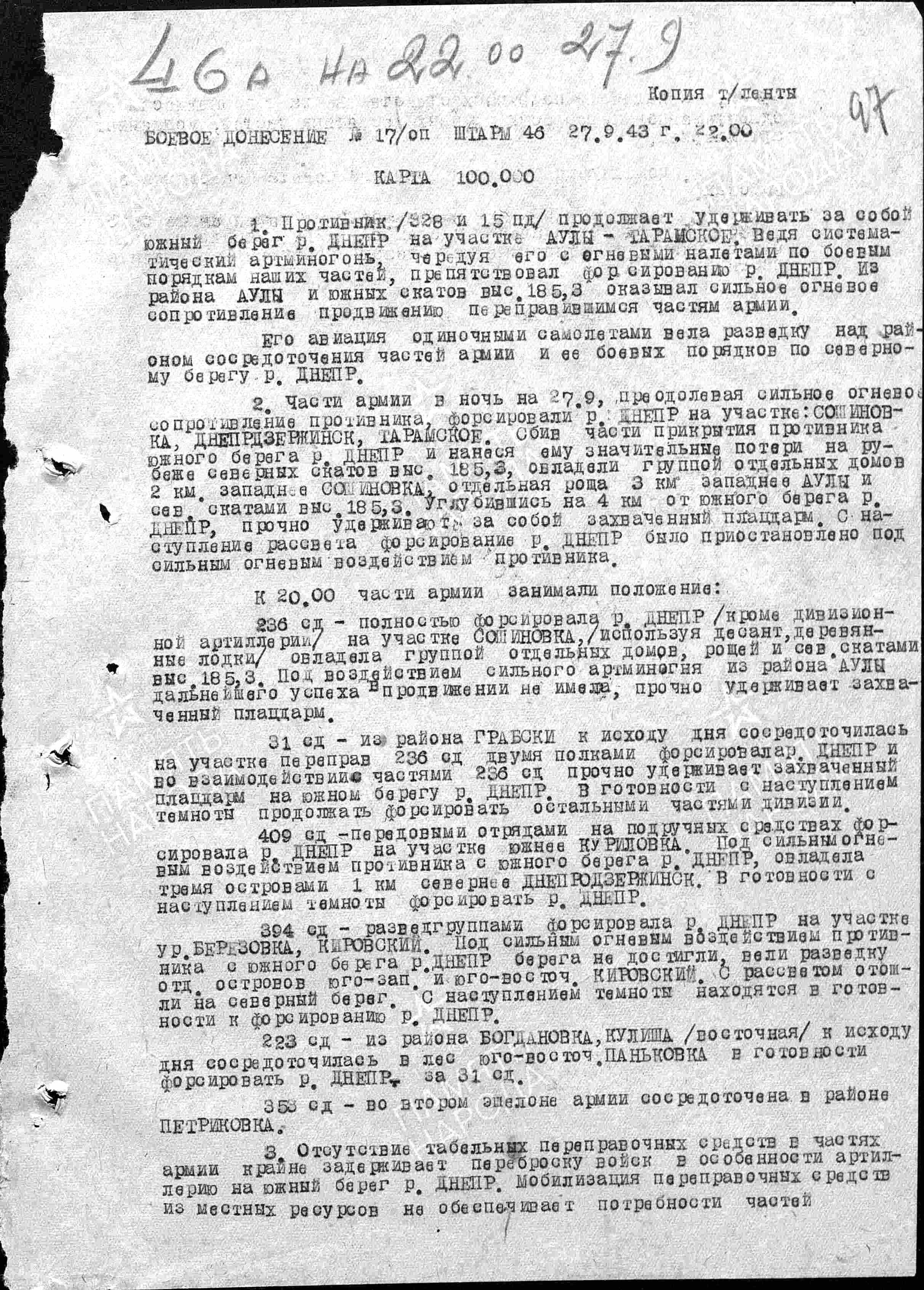 d30. Боевое донесение штаба 46 А на 22–00 28.09.