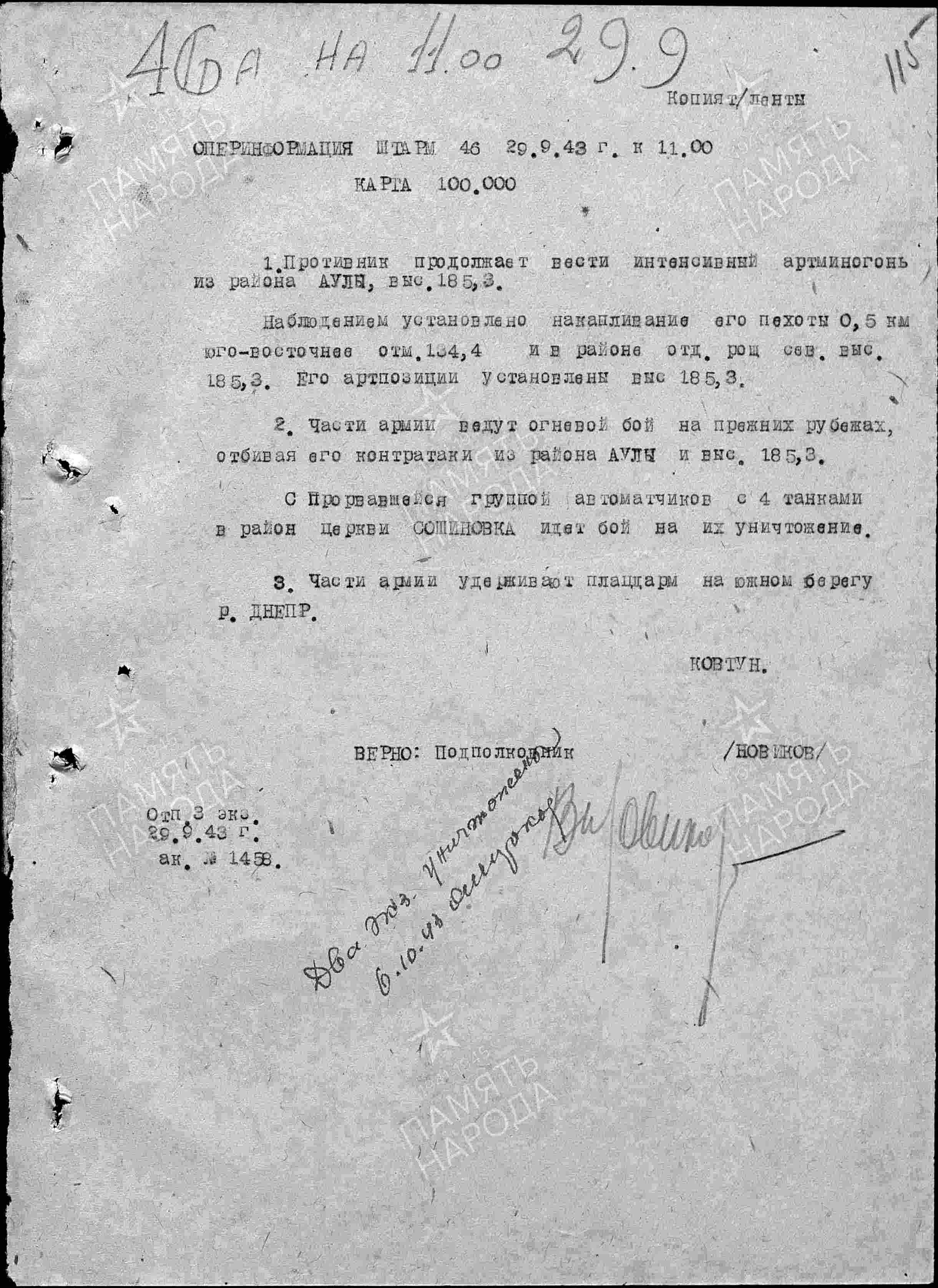 d32. Боевое донесение штаба 46 А на 11–00 29.09