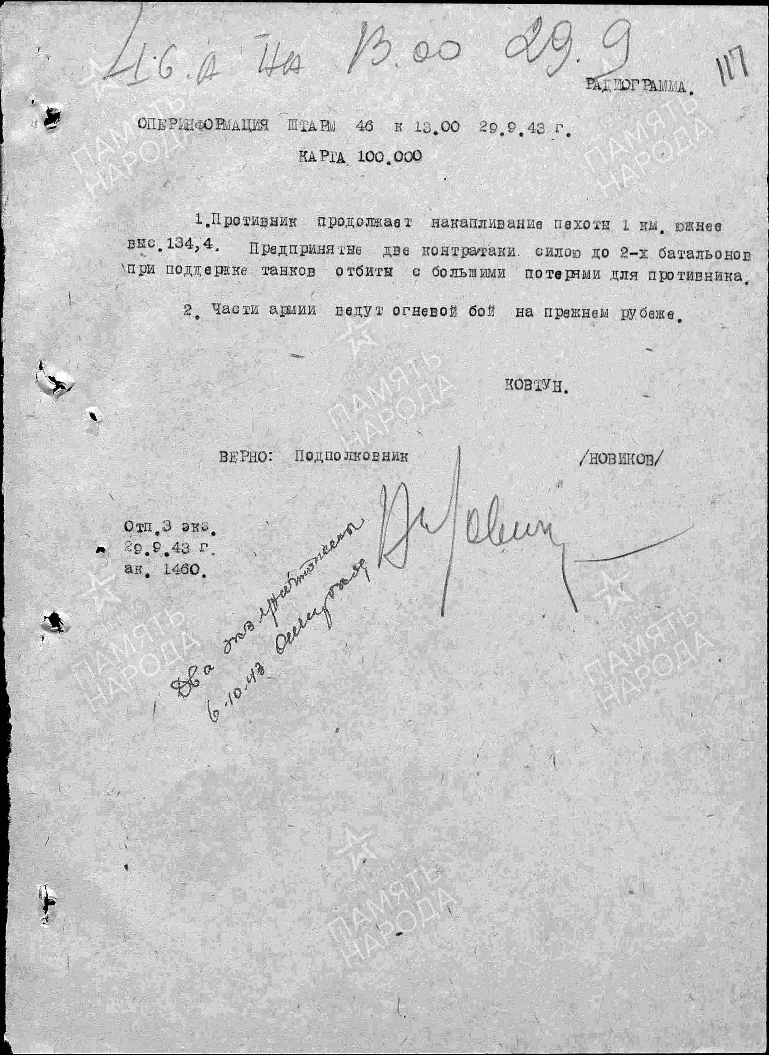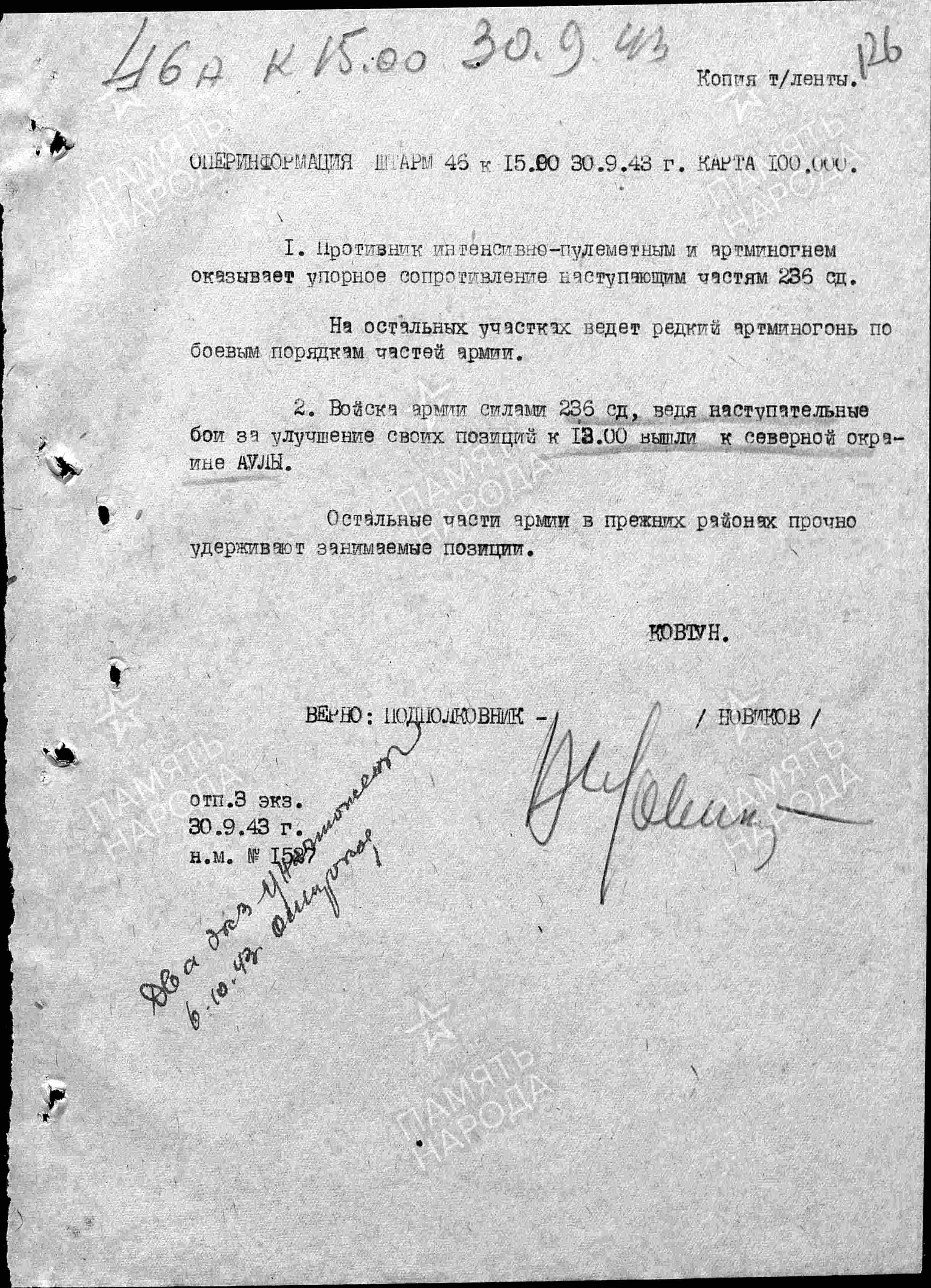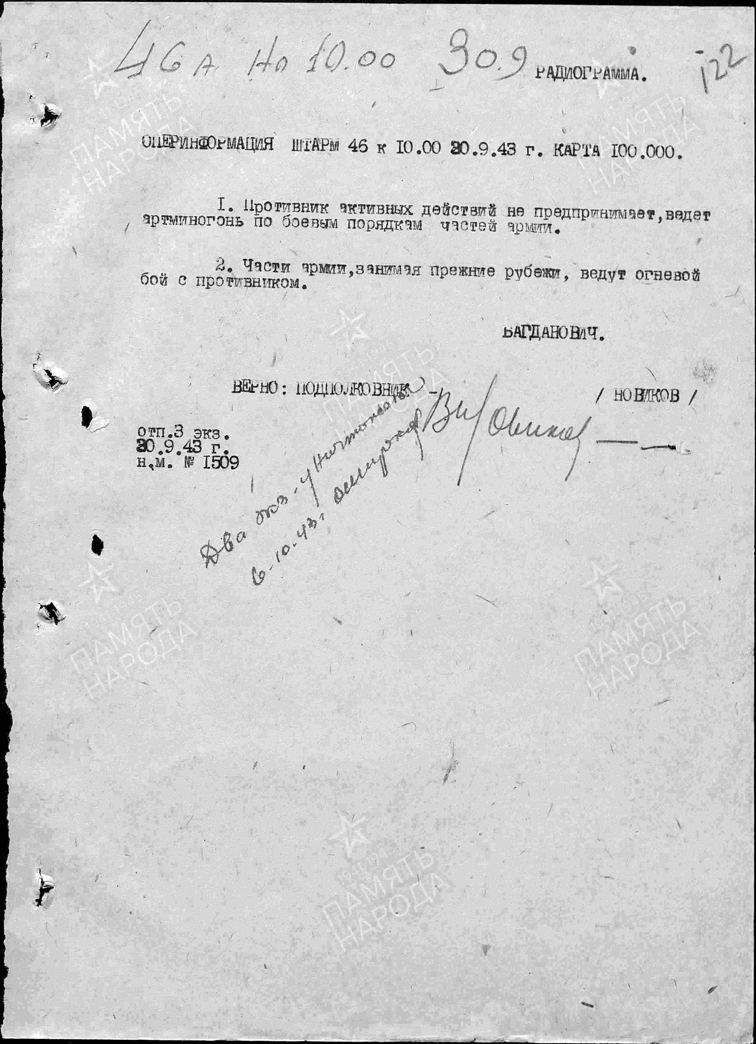 d35. Оперативная информация штаба 46 А на 10–00 30.09.