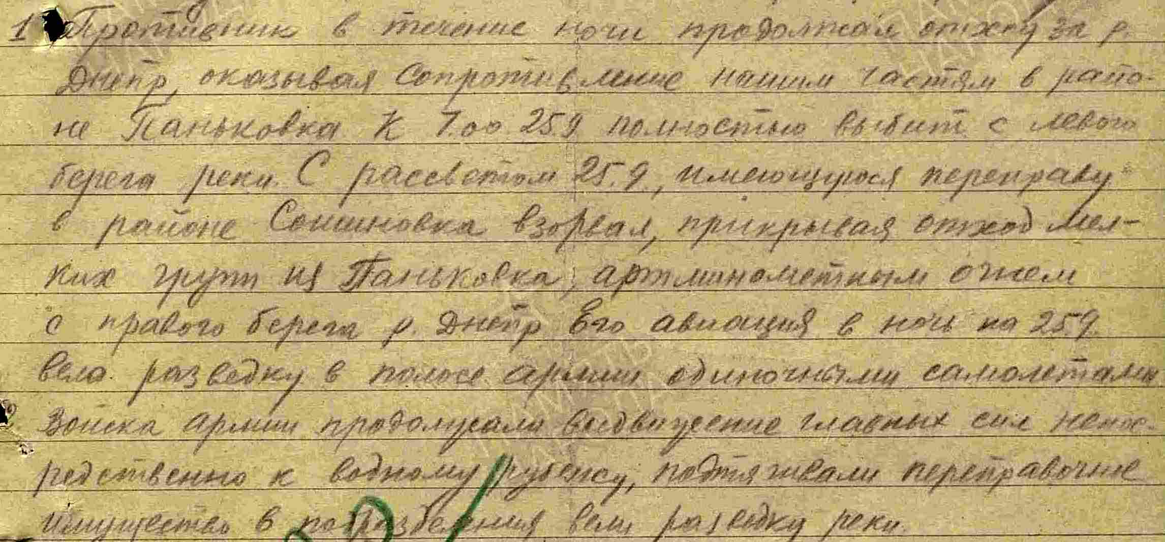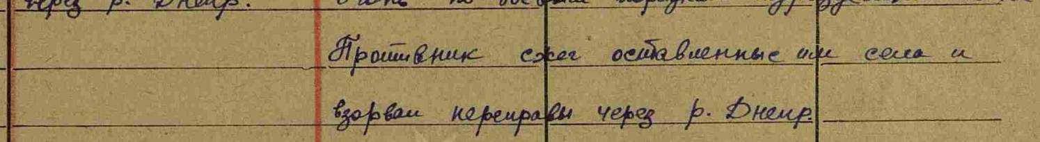 31 СД находится на левом берегу в лесу у Паньковки в готовности форсировать Днепр. И хотя форсирование было возможно только вечером 27.09, в ОИ штаба 46 А на 11–00 [d7], того же числа два полка 31 СД уже на правом берегу.