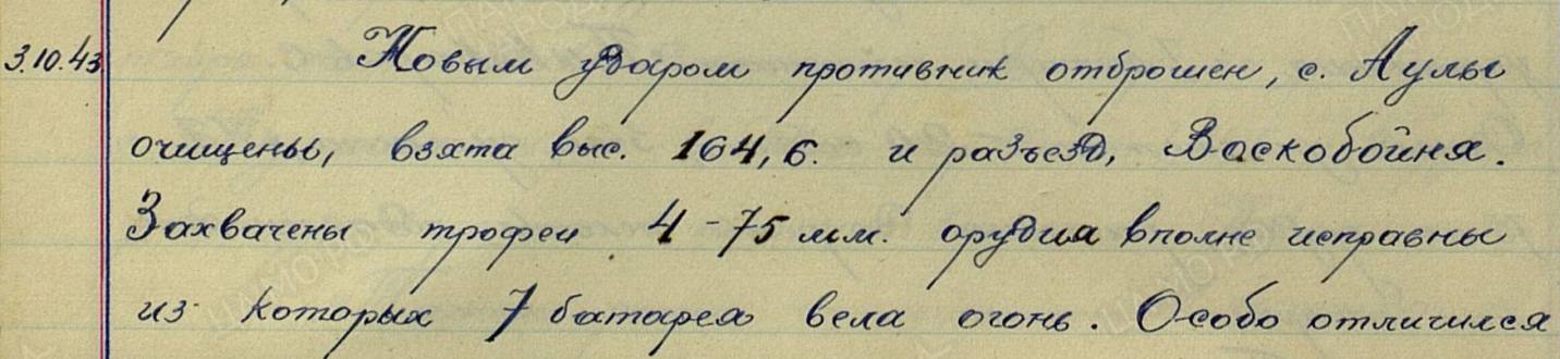 В Боевом донесении 36 СД от 25.09.43 г. [d3] отмечается: