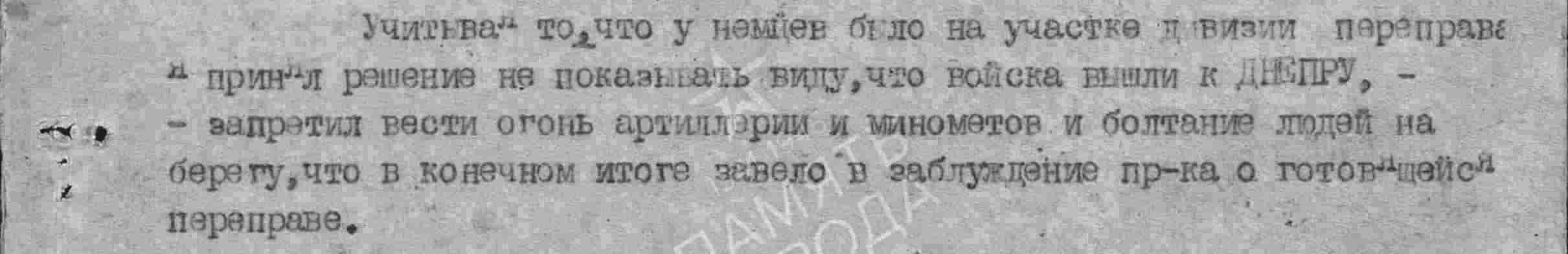 А что касается 31 СД, то из текста не понятно, когда она переправила два полка на правый берег. Можно предположить, что вечером 27.09 с наступлением темноты или 28.09 после 00–00.