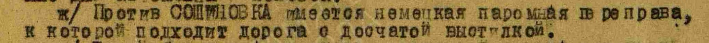 * * *Выводы: У противника напротив «Церковь» Сошиновки была паромная переправа, севернее в 400 м напротив Сошиновки были понтонные и мостовая переправы.