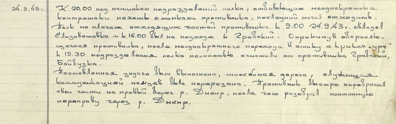 В Журнале боевых действий 248 СП от 24.09. и 27.09. 43 г. [7] находим: