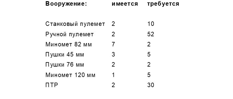 * * *Примечание автора: Полк имеет недокомплект личного состава 70 %, нет оружия и боеприпасов, шанцевого инструмента, повозок для транспортировки личного состава, боеприпасов и продовольствия.
