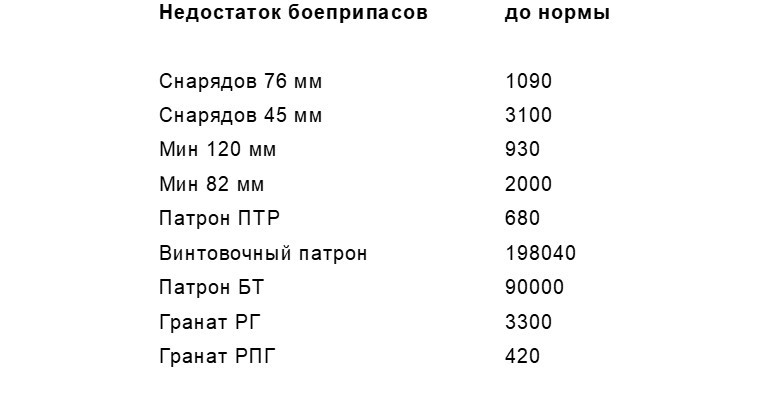 Прибывшее пополнение полностью не обеспечено шанцевым инструментом, которого в полку также нет.