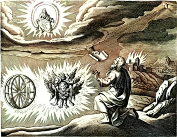 Копия гравюры Матфея Мериана с изображением видения Иезекииля (1670 г.). Общественное достояние. Источник: https://en.wikipedia.org/wiki/Merkabah_mysticism