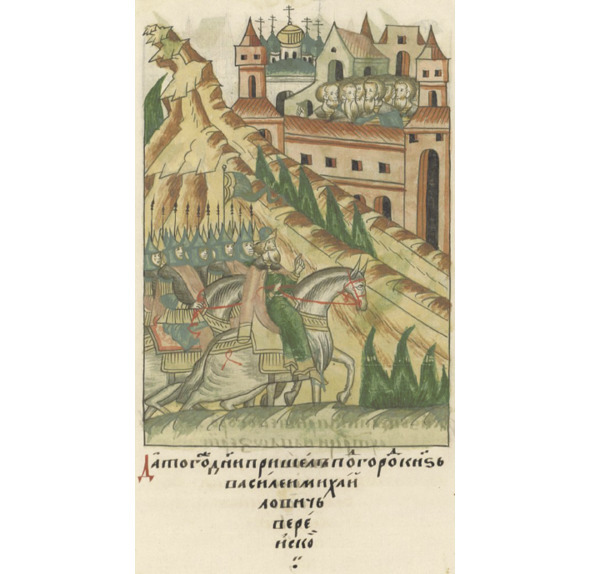 На изображении – Василий Михайлович Удалой Верейский в походе 1477 г. Лицевой летописный свод. https://runivers.ru/bookreader/book594283/#page/213/mode/1up