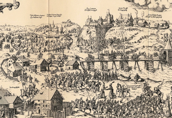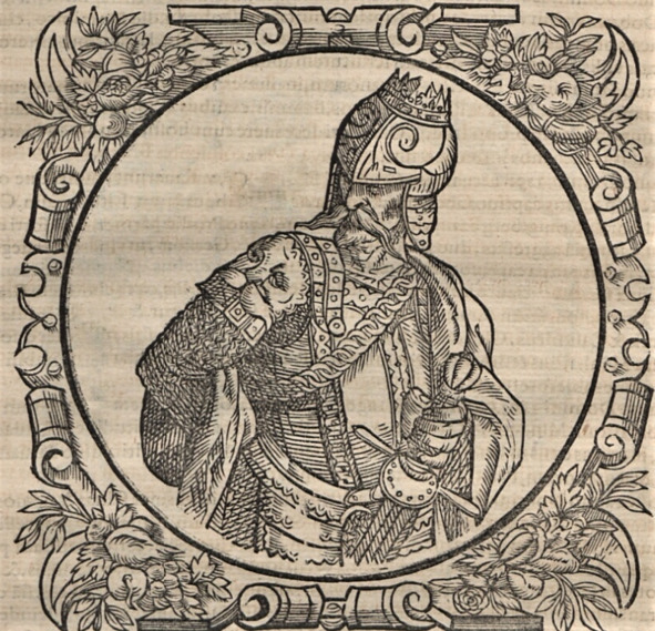 Гравюра з «Апісання Еўрапейскай Сарматыі» А. Гваньіні, 1578. Гэта ж гравюра выкарыстоўвалася як партрэт Казіміра Вялікага