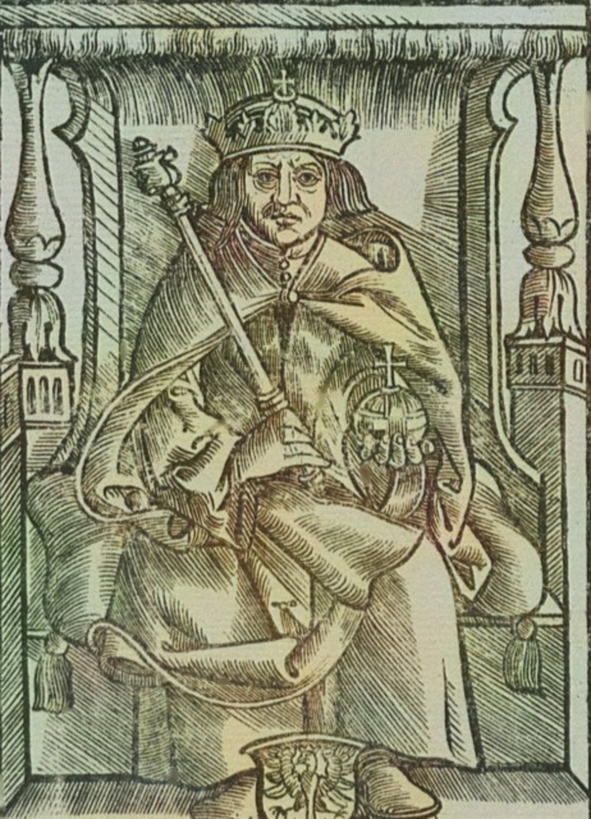 «. Казимир III Великий (польск. Kazimierz III Wielki; 30 апреля 1310 – 5 ноября 1370) – король Польши, сын Владислава Локетка и Ядвиги Болеславовны, дочери Калишского князя Болеслава Набожного, вступил на престол после смерти отца 2 марта 1333 года (коронация 25 апреля 1333 года). Полный титул: „Милостию Божией король Краковской земли, Судомирской земли, Серадской земли, Польской земли, Куявской земли, Добрянской земли, Поморской земли, Русской земли, хозяин и дедич вечный землям тем обладатель, король волелюбный“. Последний король из династии Пястов». Источник: https://stagrad.by/25-aprelya-1333-goda-v-krakove-koronovan-kazimir-iii-velikiy/