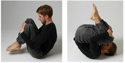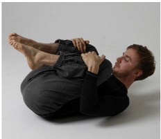7. «Ролик». Сядьте, сгруппируйтесь, обхватив руками ноги, согнутые в коленях, и, прижав их к груди, покатайтесь на спине по полу, массируя позвоночник, правую и левую стороны спины.