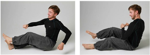 6. Сядьте на пол, ноги согните в коленях, «пройдите» на ягодицах вперёд и назад по 5 «шагов».