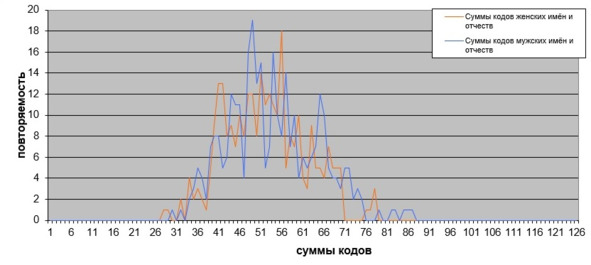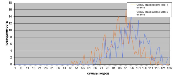 Необычная картинка выстроилась при оцифровке по системе А. Киселя [47] имён-отчеств россиян.