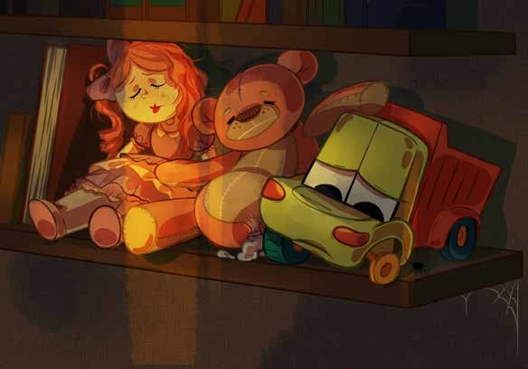 – Они давно здесь сидят, – ответила тётя Лена, – эти игрушки с дефектами, и поэтому их никто не покупает. Я бы отдала их за добрые дела, но как-то они никому не нужны. У грузовичка отвалилось колесо, кукла потеряла один бант, и у неё немного прикрыты глазки: она похожа на соню, а у медведя оторвалась лапа.
