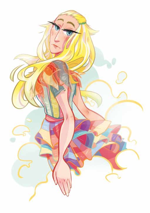 Вдруг какое-то воздушное облако опустилось на пол зала. Облако растворилось, и все окружающие увидели женщину в странной одежде. У неё были жёлтые волосы, распущенные по плечам, огромные голубые глаза, прямой нос и плотно сжатые тонкие губы. Вся её одежда состояла из лёгких прозрачных лоскутков, которые колыхались и развевались от движения воздуха. Это была колдунья Лоскутница.