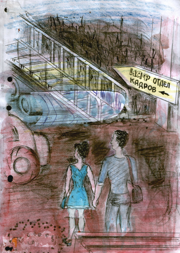 Пока Гале подбирали серьезное задание на проектирование, у нее появилось время для работы над курсовым заданием, так она училась на последнем курсе вечернего отделения НЭТИ. Ее ближайшая соседка по рабочему месту Саша Рудакова окружила ее поистине материнской заботой. Будучи начальником архива, она считала себя очень важным человеком, и позволяла себе давать команды сотрудникам. Сейчас она заставила парней принести новой сотруднице со склада, новый большущий стол, кульман. Стул она сама принесла от коменданта здания. Со всеми сотрудниками института, и даже не сотрудниками она начинала разговор очень важно, авторитетно, словами: