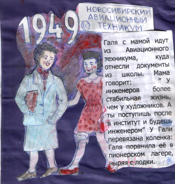 В 1949 году Галя поступила в НАТ- новосибирский авиационный техникум, о нем они с мамой узнали от парнишки Олега, который уже учился там, на втором курсе и был доволен. Семья его жила в этом же доме.