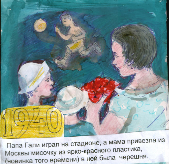 Девочке, как старшей, и первому ребенку, досталось гораздо больше любви, чем ее братьям, поэтому она смело шла по жизни, выбирая интересные профессии, друзей и места работы. Но тогда пришла война, начались бомбежки вокруг. Бомбили и поселок. И все это было оставлено. Оставлена это красивая жизнь, когда мама приносила черешни в красной пластмассовой миске (пластмасса, была тогда новинкой). Однажды она это принесла на стадион, где сидели дети с отцом. И этот момент навсегда тоже врезался в память Гали. Как и то, что были маскарады на новый год.