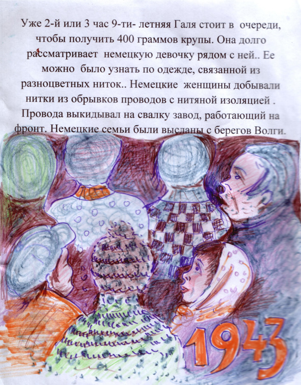 Тётя скоро стала зарабатывать шитьём: портниха она была умелая. До этого мама Гали шила все на руках: одежду для сыновей и дочери. А простыни Галя обшивала на руках, пока мама была на работе. А сейчас тётя, Екатерина Васильевна стала зарабатывать успешно. В магазинах не было еще готовых платьев. Тётя привезла много выкроек и журналов мод довоенных и даже времен революции. Женщины листали их и выбирали детали для платьев. Еще тётя привезла толстую книжку на немецком языке. Обложка была оторвана. Но там были короткие рассказы вначале, а затем шли произведения готическим шрифтом. Все это увлекала Галю. Она училась уже в шестом классе. Охотно изучала немецкий язык. И часто, прижавшись к батарее спиной, штудировала эту книжку, упражняясь в произношении. А что делать? Телевизоров не было, а коньки и лыжи – это уже были позднее.