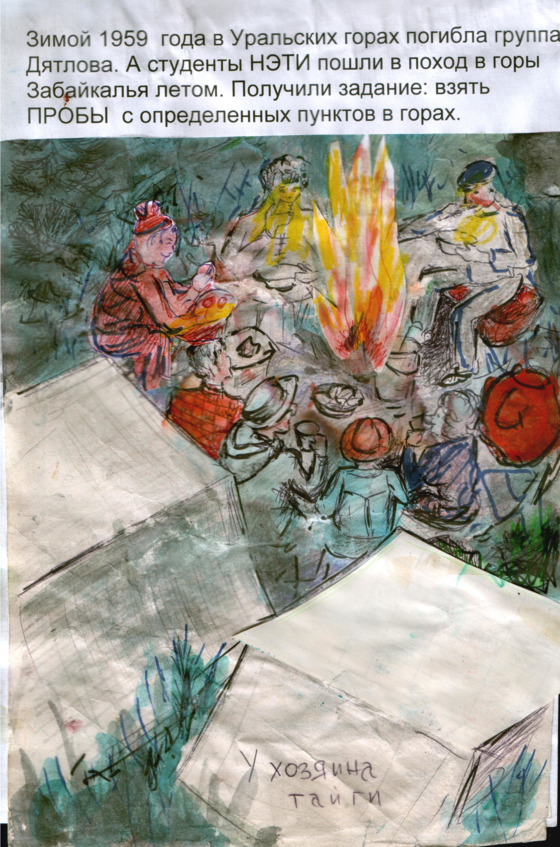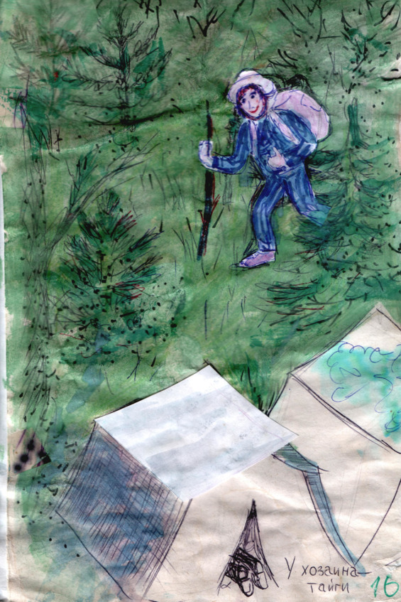Юрочка так и делал. Вскоре он заболел «животом», он сильно ослаб, его поклажу пришлось разделить между остальными, он шел налегке, а Гале досталось дополнительно тащить ведро, которое нес раньше Юрочка. Когда он поправился, продуктов уже было немного, а путь еще был долог. Ребята шли голодая. Их выручали охотничьи стоянки: бревенчатые, уютные домики с нарами с одеялами, необходимой посудой и небольшим запасом продуктов. Медвежий жир, соль и спички были всегда. По закону тайги нельзя было съедать все запасы. Они брали немного еды: крупы в железных банках, сухие брикеты, писали записки, что здесь была группа студентов из Новосибирска, имеет с собой ослабленного человека, мало еды. В записке писали, что именно взяли. Гале пришлось готовить суп из гороховых брикетов, края которых были объедены мышами в одном из таких домиков. Ребята следили за ней, чтобы она не выкидывала объеденные кромки, так как мыши здесь экологически чистые. Когда Галя не стала, есть это варево, её никто не уговаривал, а тут же все разделили между собой. Лида нашла и радостно ела какие-то лопухи, утверждая, что это ревень. Ягоды кончились, а охотники и рыбаки были неудачные. Они не хотели зря тратить время на добычу, да и начальник просто зверел, говоря: