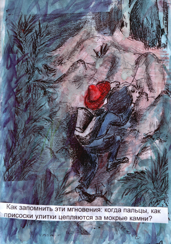 Но, но какой-то голос говорил бедной девушке, что нужно лезь вверх и в этом её спасение. Ближайший склон горы был почти отвесным, а уже темнело, искать другие места, не было времени. Галя голыми ладонями, как присосками, цеплялась и лезла вверх, обещая себе навсегда запомнить это чувство единения со скалой. Боже мой, какая высокая гора! Но вот чудо, гора вдруг перестала выситься вверх, так уже в темноте Галя неожиданно нащупала правой рукой шелковистый ствол березы, она узнала ее кору, и целовала её, как спасительницу.