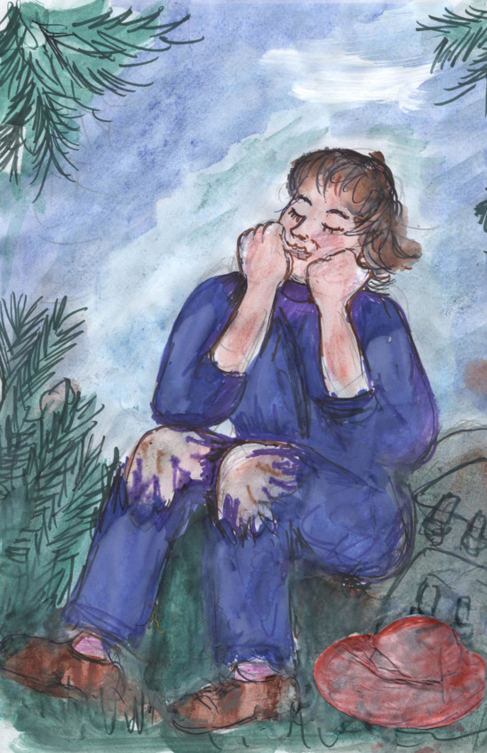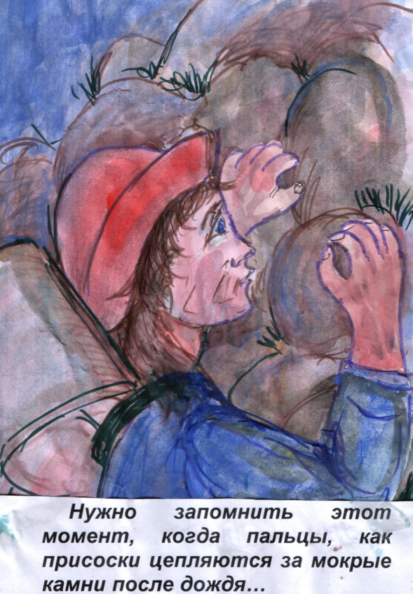 Хотя перед этим ей пришлось переодеть брюки задом наперед, так как пока она лезла по мокрым скалам, то порвала обе коленки. Не только колени брюк, но и участки кожи. Но тогда этого совсем не чувствовалось. Умыться было просто: была сильна роса. Значит, днём дождя не будет. Это уже прекрасно. Галя села, расслабилась, и молча, оглядывала все вокруг.