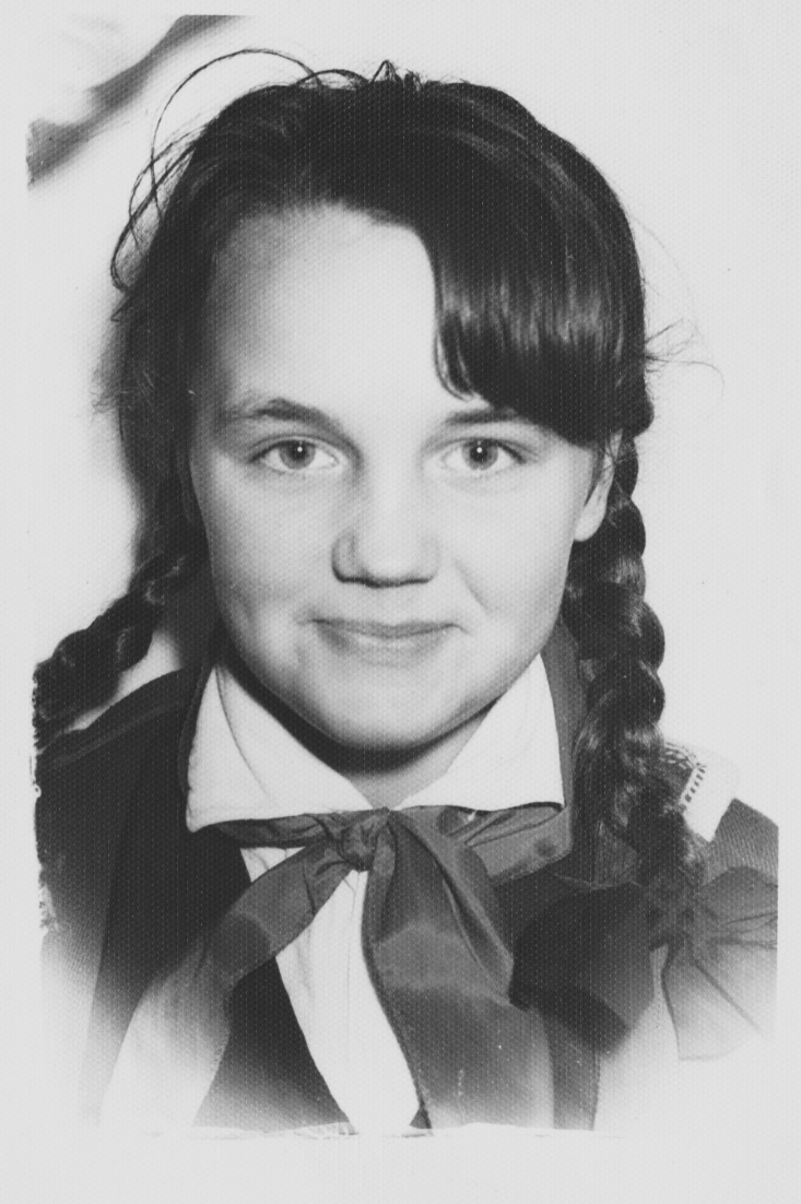В школе Нюся была гениальной переписчицей. Приходят с Колей Ворониным пораньше и каллиграфическими почерками переписывают. Она раньше меня научилась ездить на велосипеде, у неё был проигрыватель с гнущимися голубыми пластинками.