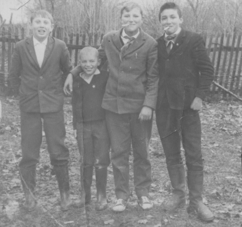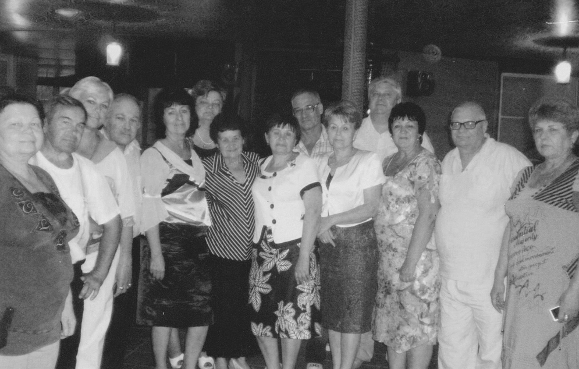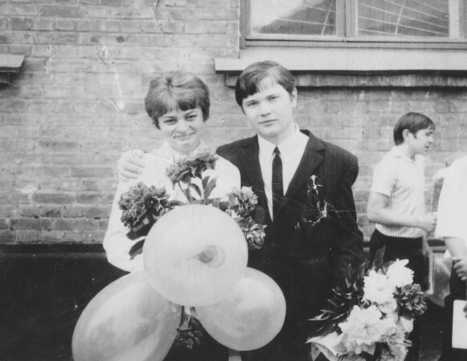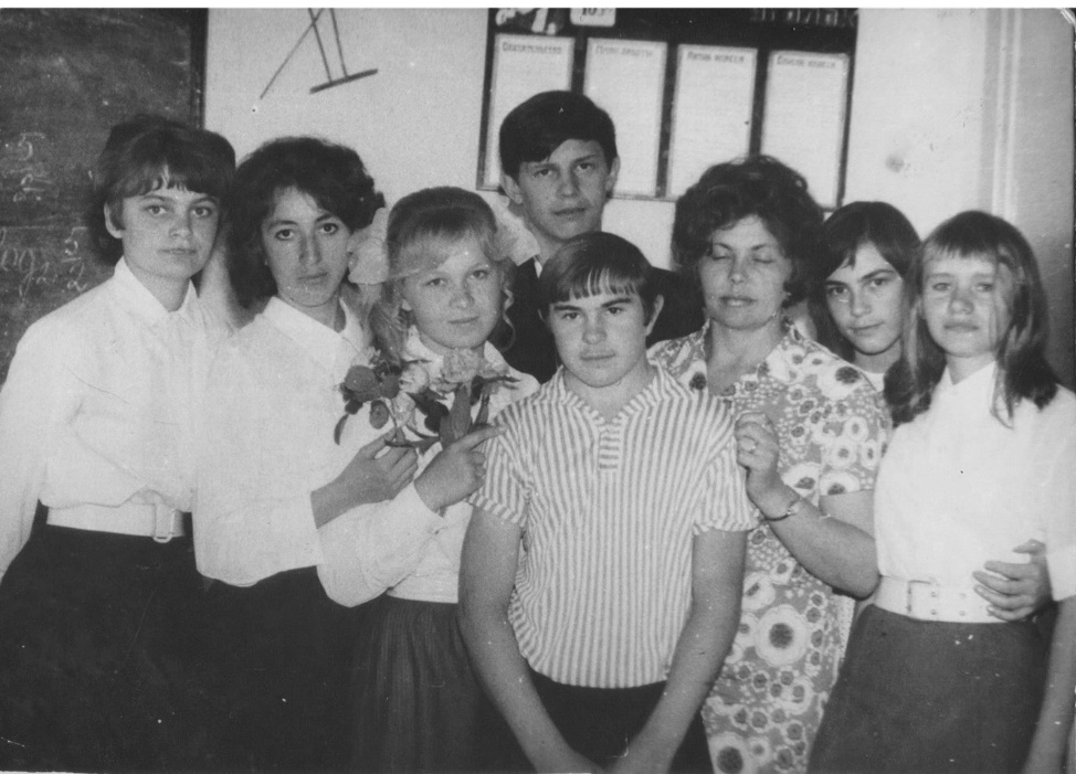 Притерпелось всё из-за одноклассников. Не было такого, как в фильме «Чучело». Моими подружками стали Людка Филатова, Светка Позднякова, Женька Катуржевская, Людка Брюханова, иногда к нам присоединялись Лера Люц – девочка музыкант, Людка Шадрина, Танька Якимова. Они-то стали мне помогать: кто объяснял, а кто и списывать давал. Из мальчиков чаще с нами общались Володя Пашигоров – комсорг класса и Саша Скоков. Есть фото, на нём наша вся компашка, там Саша держится за сердце. Это его жизненная позиция, сердечно относиться к людям. Сейчас Саша с женой живут в Краснодаре, как и Толик Кропин, всё никак не соберёмся. То меня ковид придавил, то Толик болеет, а у Саши никак не получается – деловая колбаса. Трудно представить Кропина больным – спортсмен. Его любимое словечко в классе было «ништяк». А у нашей компании –«давеча», «намедни».