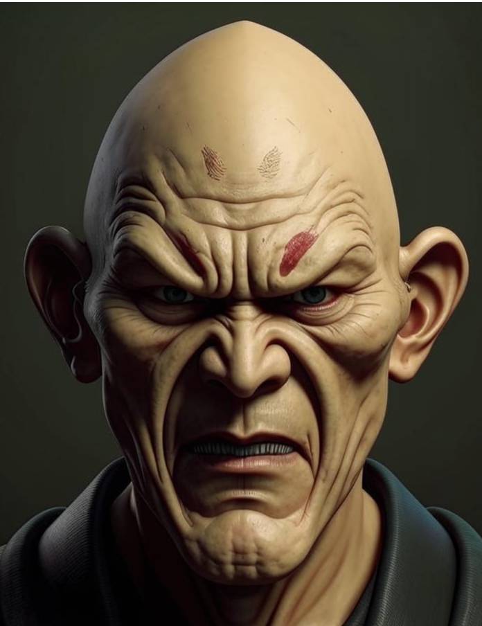 Зв дверью громко затопали, заворчали, и на крыльцо… Вышло… Точнее, выбралось… нечто невообразимое. Мужчина-мутант был вынужден продвигаться на четвереньках. А чтоб видеть, куда направляется, мелко переступал короткими ручками-ножками, широкой попой вперед. Потому что длинная шея неестественно перегнулась и подвесила над спиной абсолютно лысую голову. Мутант походил на жуткого мясистого скорпиона, но вместо опасного жала, на ребят смотрело отвратное, язвительно лицо. Зрелище удручающее. Злобные глазки с прищуром уперлись в Лизу и Борю.