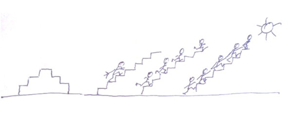 Подходим к новому разумению – разумению того, что движение вверх по лестнице – это коллективный труд в сотворчестве или, правильнее сказать, общинный, потому как община – это коллектив, у которого есть долговременная общая цель. В нашем случае – это движение к Свету через создание справедливого общества. Этот мир под эту цель и создан и вне этой цели существовать не может, он будет сваливаться в первоначальный хаос, если повернуть от света. Чтобы этого не произошло с человечеством, и существует страна Россия. А чтобы она сохранилась в этом качестве, происходят революции, если эволюция заходит в тупик, если по-другому уже не получается. И вся энергия накопленного хаоса, выбрасывается революцией наружу, гибнут миллионы россиян. Это одно из проявлений любви русских ко всему человечеству, наше служение ему. Это наш подвиг, потому что, оказывается, больше некому, и об этом похоже знают наши враги. Вот так вот.
