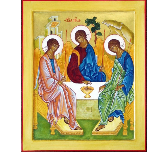 Ну, раз про ангелов, значит пора про Троицу, где этих ангелов трое на рублёвской иконе, одном из главных символов русского православия. Собственно, поэтому я и назвал статью «любовным треугольником», но не в том, конечно, образе, во что превратили его современные писаки прикольно – эротического жанра, а, как вы понимаете совсем о другом. Сама глубинная суть ангела – это любовь. Это его мир, его способ общения с ним. Проявляется любовь в виде бескорыстного служения миру людей (это для ангелов нижний мир, как для нас мир природы), друг другу (ангельский мир) и Творцу (верхний мир). У рублёвской троицы есть несколько толкований. Но я сейчас о том, что за каждым ангелом на иконе нарисован свой символ мира для людского служения в любви: мира людей – дом, мира природы – дерево, и верхнего (горнего) – гора. Научиться бескорыстно служить этим трём мирам и есть главная задача человека.