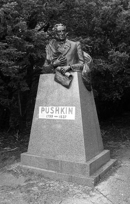 Представьте себе парящего ангела (или музу). Своими крыльями это неземное существо опирается на полукруг, похожий на подкову. Вместе подкова и крылья представ- ляют собой изломанное кольцо. Замкнутый круг судьбы ли, творчества, или двух ипостасей – земного и небесно- го существования. По древним легендам, у музы правое крыло добра, левое – зла. В скульптурной композиции По- тоцкого эти крылья скованы, объединены. В левой руке у сдерживаемой земным притяжением музы – венок. А даль- ше – страшное. В венке голова поэта. Не бюст, а голова. Помните название памятника – «Реквием по Пушкину».
