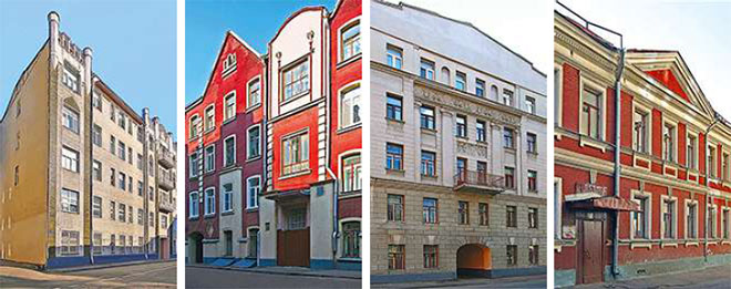 Доходные дома на улице Машкова, современный вид (слева направо № 17, № 21, № 24, № 22). Автор фото Николай Выморков. Источник: mmsk.ru