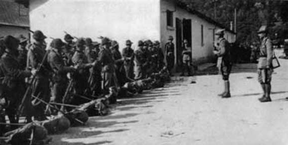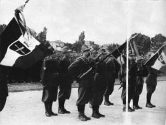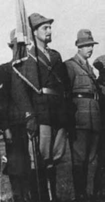 Полковник Лавиццари со знаменем 9-го полка альпийских стрелков. Гориция. Август 1942 года