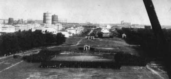 Воскресная месса на спортивном поле Ворошиловграда. Батальоны альпийских стрелков выстроились квадратами