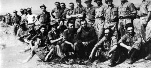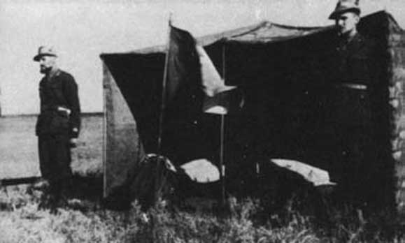 Почетный караул из офицеров батальона перед штабным навесом, где находятся останки командира батальона «Тирано» майора Волпатти и ротного командира капитана Диамминола