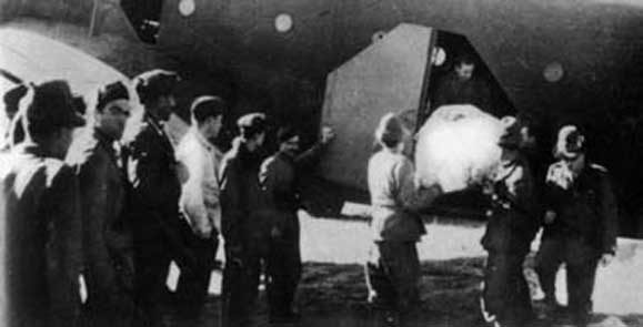 Погрузка раненых альпийских стрелков в транспортный самолет