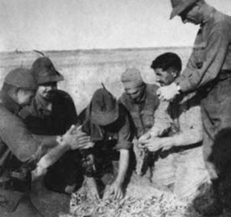 «Остатки сладки». Прибытие на фронт на Дону партийного секретаря Видуссони, который вручил подарки альпийским стрелкам от города Милана. 28 сентября 1942 года