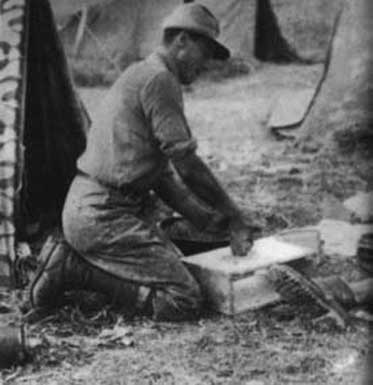 …и они же под навесом, на ящике от боеприпасов, замешивали муку, как учила их мать, когда были маленькими