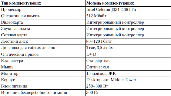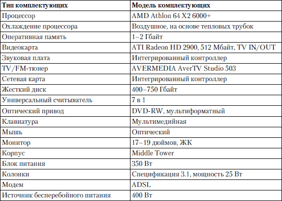 Таблица 1.2. Конфигурация компьютера для домашнего использования