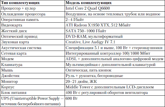 В табл. 1.3 приведен пример конфигурации, обладающей достаточным запасом мощности и других ресурсов, что позволяет компьютеру справляться практически с любыми играми, и не только.