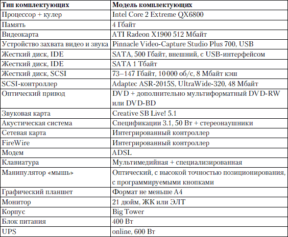 Таблица 1.4. Конфигурация компьютера для работы с графикой и обработки видео