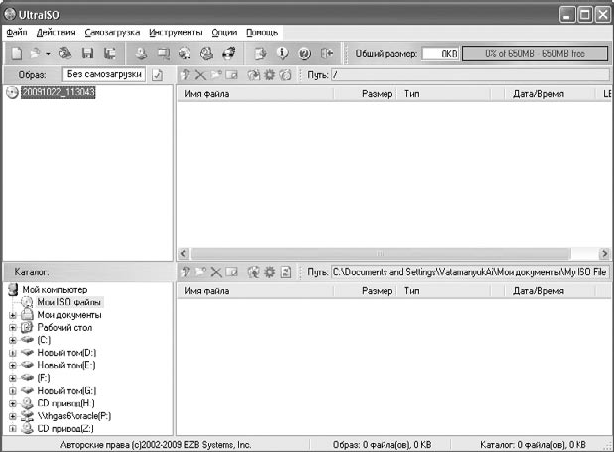 Итак, запускаем программу. Приложение имеет достаточно простой и понятный интерфейс (рис. 2.1). В нижней части окна программы отображается список жестких дисков и других накопителей с их содержимым, в верхней – содержимое выделенного в списке образа диска.