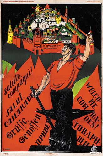 «Привет, Товарищи!» Один из самых известных плакатов Д. Моора, посвященных образованию Коминтерна
