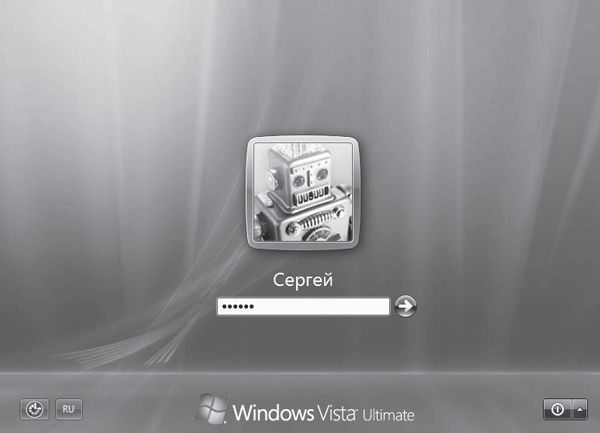 В первом диалоговом окне нужно ввести имя и при необходимости защитить компьютер от посторонних лиц паролем учетной записи, а также задать рисунок (рис. 1.5). Подробно о том, что представляет собой учетная запись, рассказано в начале гл. 7.