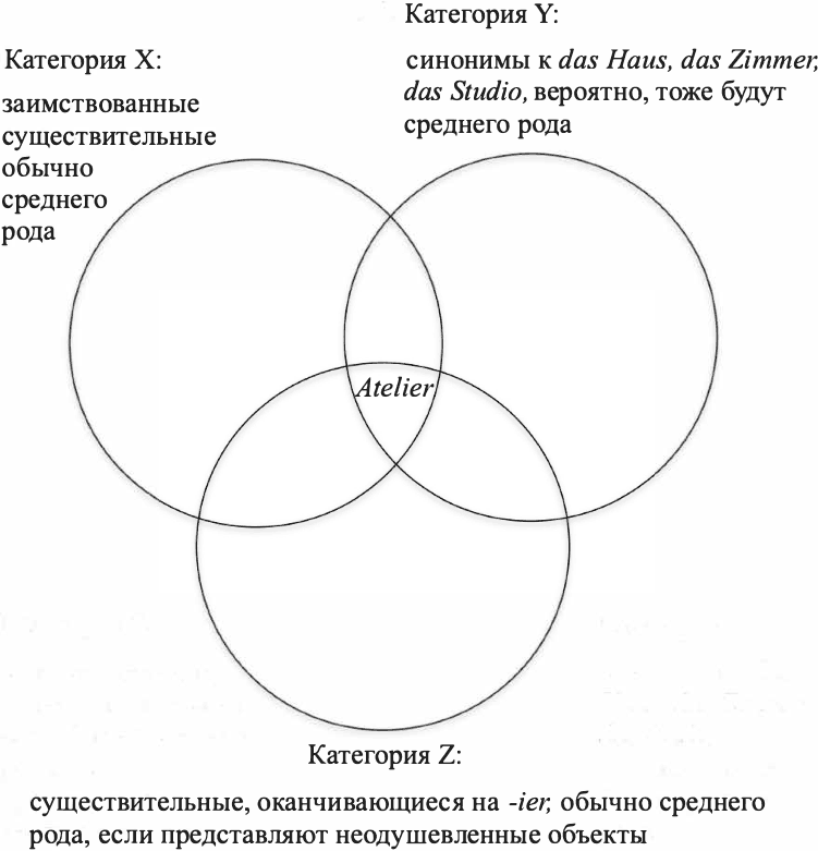 Рисунок 2. Пересекающиеся категории – ключ к определению рода существительных